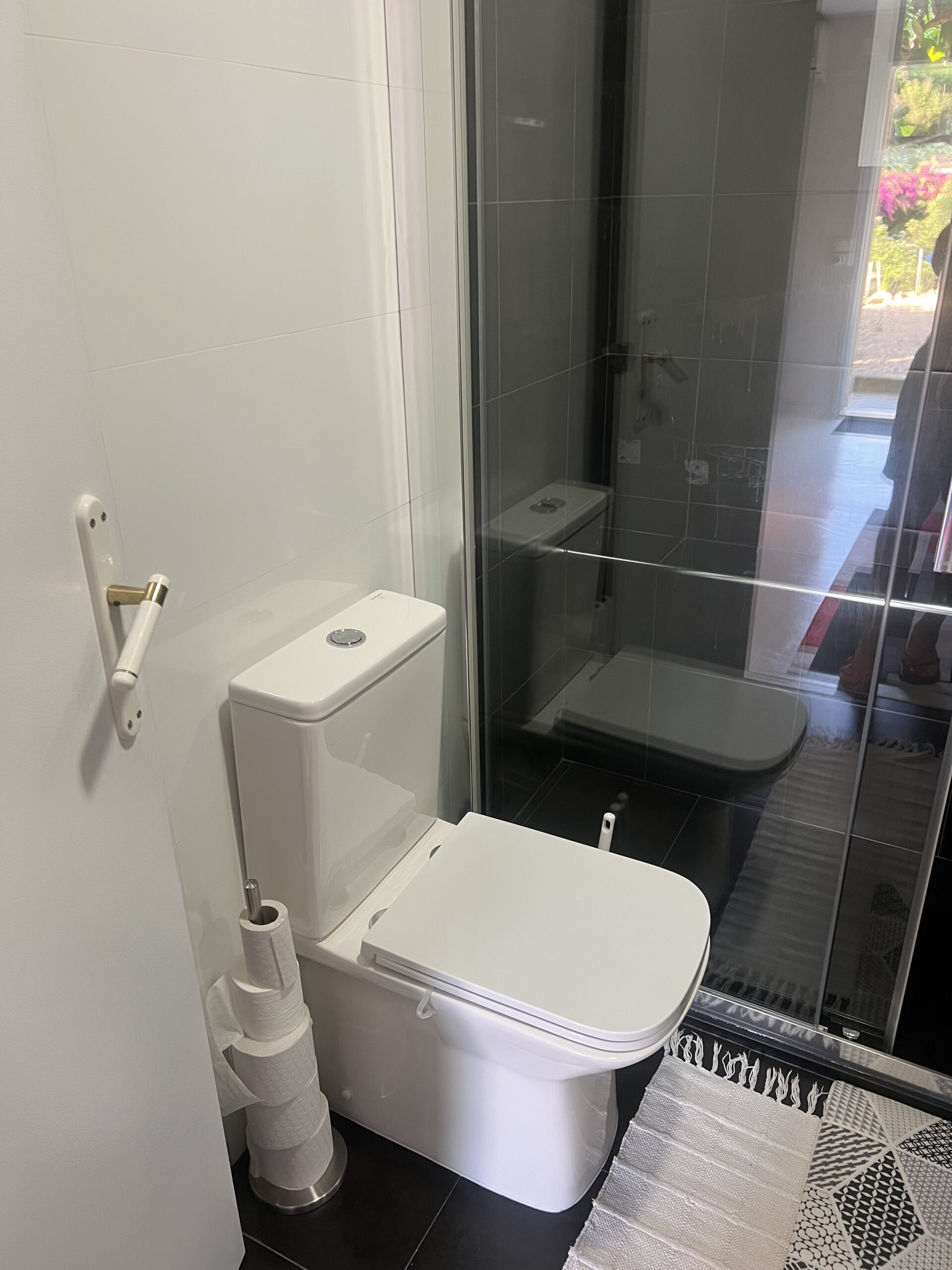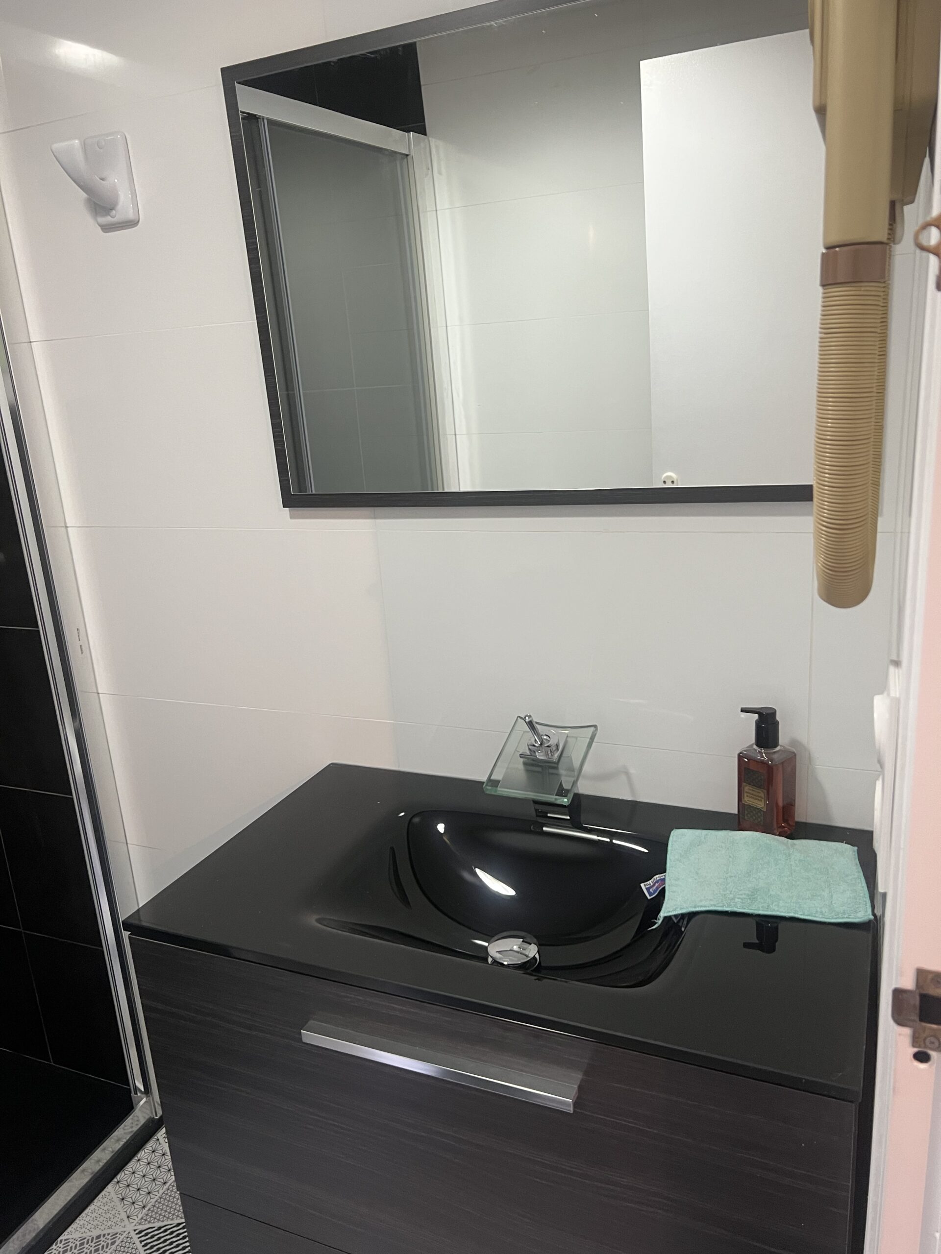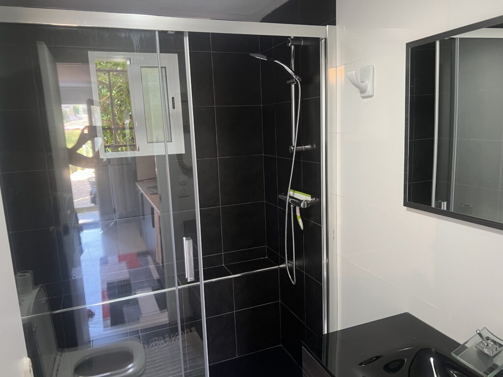 La salle de bain est fonctionnelle, dotée d’une douche à l’italienne, d’un WC ainsi que d’un lavabo. Les serviette de bain sont fournie.